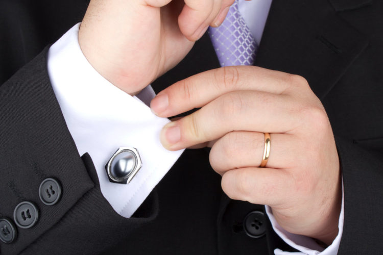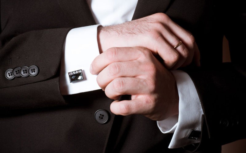 Этикет предусматривает, чтобы манжета рубашки была видна всего на пару сантиметров из-под рукава пиджака, а при поднятии или сгибании руки можно легко рассмотреть небольшие запонки хозяина.