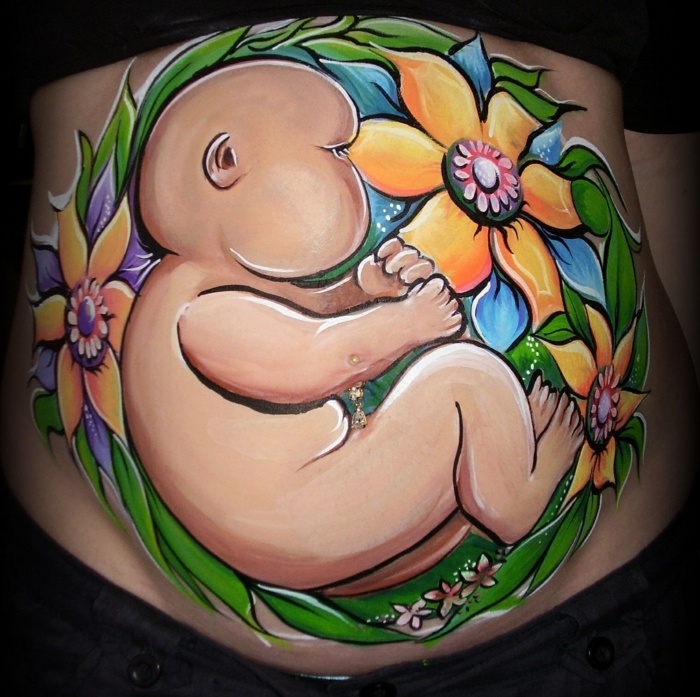Для профилактики тревожных состояний и чтобы просто поднять настроение, надо научиться выражать свои эмоции в рисунке. А «полигоном» для столь необычного творчества можно выбрать самую красивую часть тела животик.