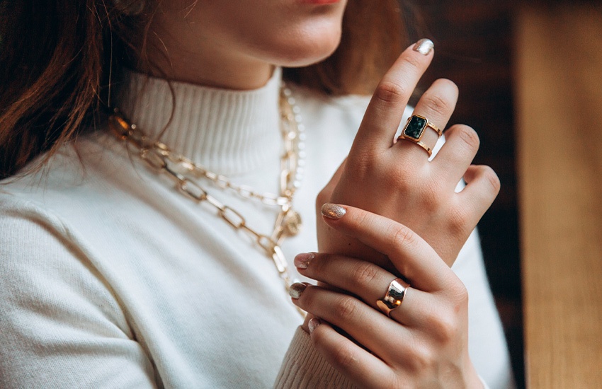 Самая распространенная жалоба — окрашивание кожи под кольцом или браслетом в серо-зеленый или черный цвет. Это не всегда признак подделки. Чистое золото (24 карата) — металл мягкий и непригодный для ежедневной носки, поэтому ювелиры добавляют в него лигатуру: медь, серебро, цинк или никель для прочности. Именно лигатура вступает в реакцию с окружающей средой.